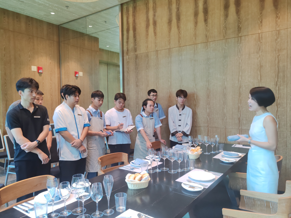↑2024年11月14日,三亚中瑞酒店管理职业学院继续教育中心前往三亚山海天大酒店傲途格精选开展“旺工淡学”旅游业人才培养项目送教入企线下教学活动。