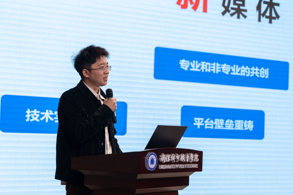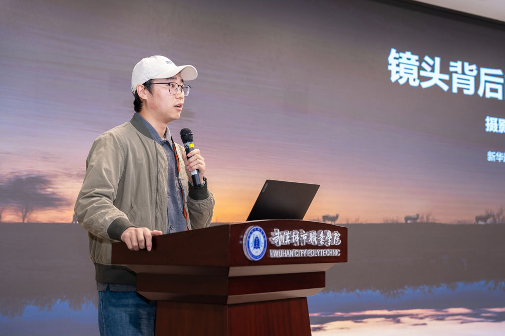 汪鹏在致辞中首先介绍了新华社进校园活动的背景以及开展情况。他表示,武汉城市职业学院办学历史悠久,在人才培养、产教融合、服务社会等方面成绩突出。新华社与武汉城市职业学院都有着鲜明的红色基因,新华社将依托长期报道积累的鲜活“大思政课”素材,在未来的合作中,充分发挥资源优势,共同打造优质思政教育平台,在助农直播、宣传推广、人才培养等方面开展更深层次合作。他希望三位记者的分享能帮助青年学生加深对专业、职业、事业的理解,树立正确的政治方向、舆论导向、价值取向,讲好中国故事、校园故事,传播正能量。