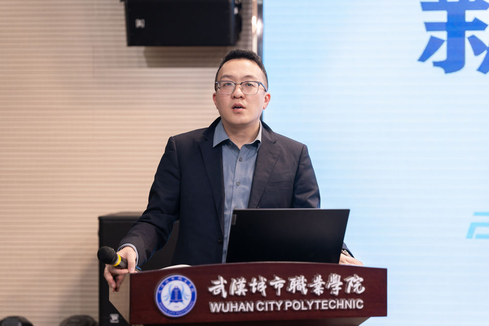 王谦在致辞中回顾了新华社湖北分社长期以来积极发挥自身政治优势、品牌优势及资源优势,向社会各界及时生动地传播了武汉城市职业学院在人才培养、数字教育成果、服务国家战略和经济社会发展方面的成绩与经验。他指出,新华社湖北分社走进武汉城市职业学院是首次走进高职院校,对学校来说意义重大,期待今后与新华社湖北分社有更深入的合作,在分社的指导下,继续用年轻人喜闻乐见的方式,讲好新时代职业教育的生动实践和武城故事。
