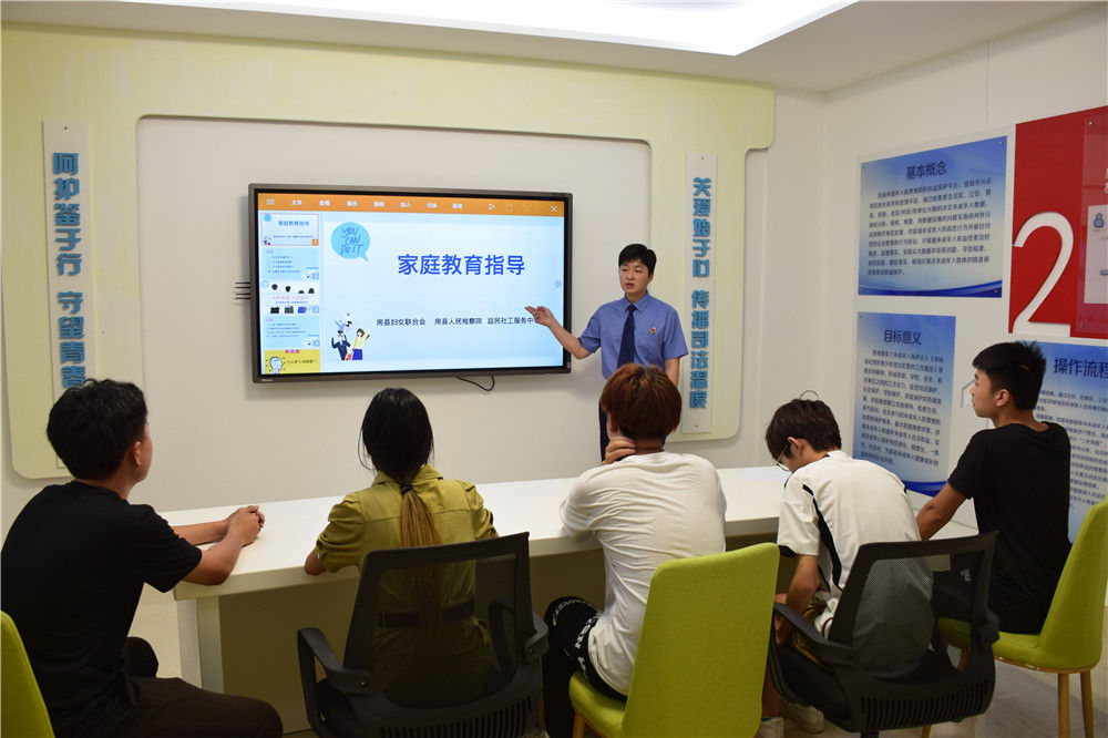2023年7月12日,十堰市房县检察院未检干警在“简嘉”工作室开展家庭教育指导。(资料图)