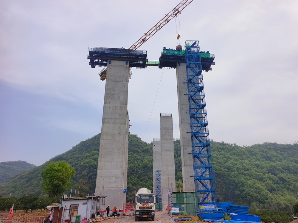 近日,襄(阳)宜(昌)高速公路汉马岗大桥首个盖梁顺利浇筑完成,标志着桥梁施工迈入新阶段。