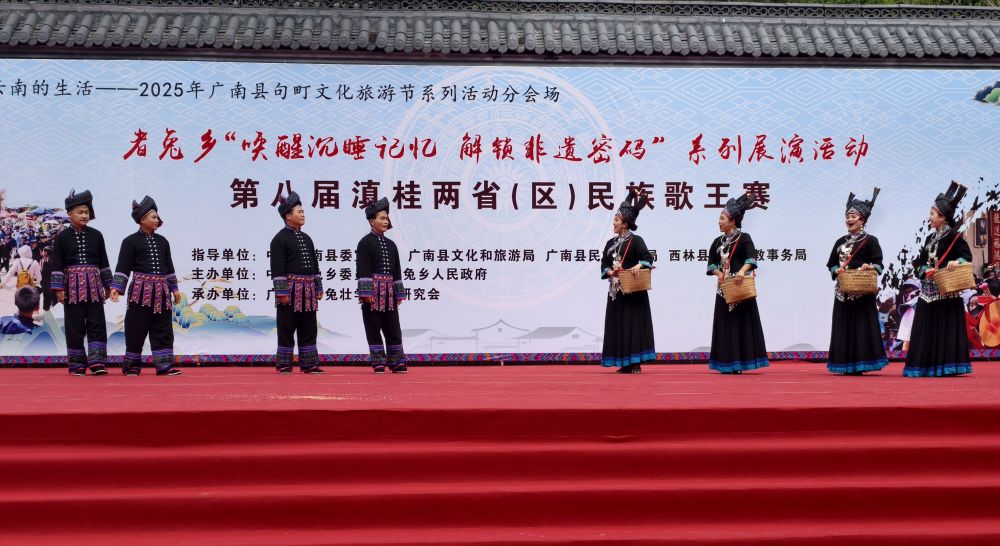 活动当日,第八届滇桂两省(区)民族歌王赛拉开帷幕,山歌爱好者用动听的歌声赢得在场观众的阵阵喝彩。