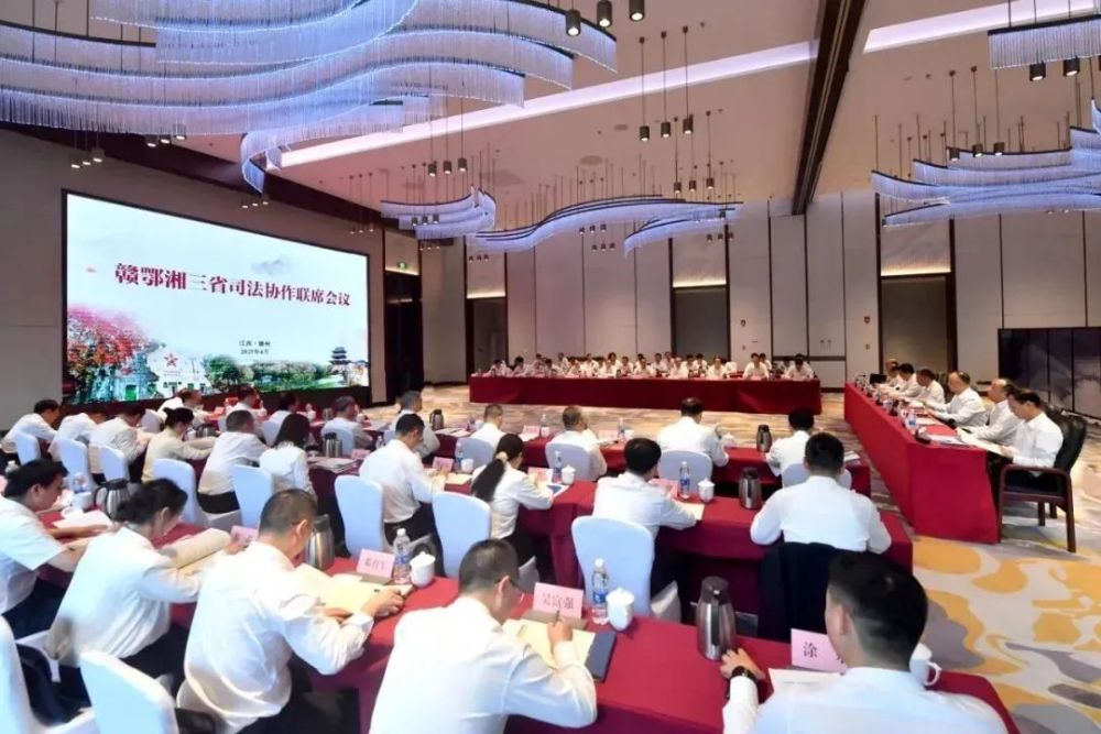 为进一步加强赣鄂湘三省司法协作,服务保障长江经济带(中游段)高质量发展,4月22日,赣鄂湘三省司法协作联席会议在江西赣州召开。江西省委常委、省委政法委书记罗小云出席会议并致辞,江西高院党组书记、院长傅信平,湖北高院党组书记、院长游劝荣,湖南高院党组书记、院长朱玉,最高法院政治部副主任陈本宇出席会议并讲话。