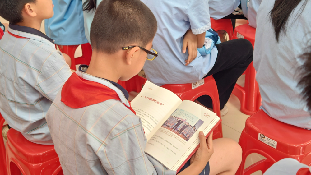 友谊镇中心小学学生伦礼则从《近镜头:温暖的瞬间》中选取《近镜头丨“今天我是如约而来”》进行阅读后分享:“习爷爷跨越山海如约赴澳门的身影,让我懂得诺言是红木棉的根,扎得越深越能开出赤诚的花。作为生活在祖国‘南大门’的少年,我要像界碑旁的小树苗,把诚信刻进成长年轮,用每一次认真读书、每一次兑现承诺的枝叶,接住祖国洒向南疆的阳光。”学生何华飞在参与活动后表示:“通过此次活动,我们更能深刻地理解了阅读与生活实践相结合的重要性。”