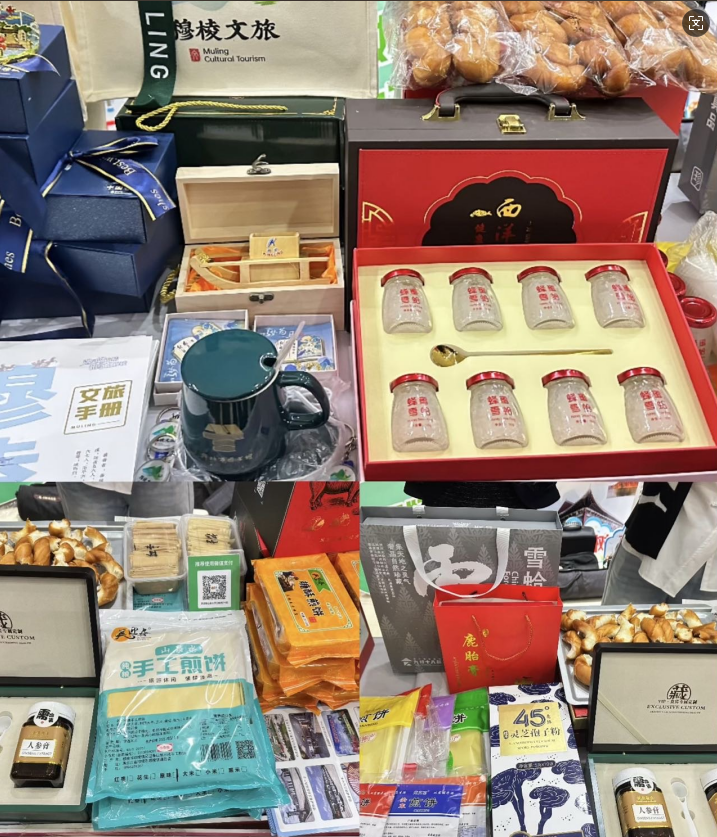 现场开设了文创匠心展区,设计师将孤榆树抗联密营的红色基因、中东铁路的百年沧桑、海月湾欢乐水世界转化为可触可感的文创语言,设计出了穆棱印象城市伴手礼、文创抱枕、书签、恒温杯、雨伞等一系列特色文创产品,这些承载城市记忆的文创产品,正在构建穆棱文旅的超级符号。