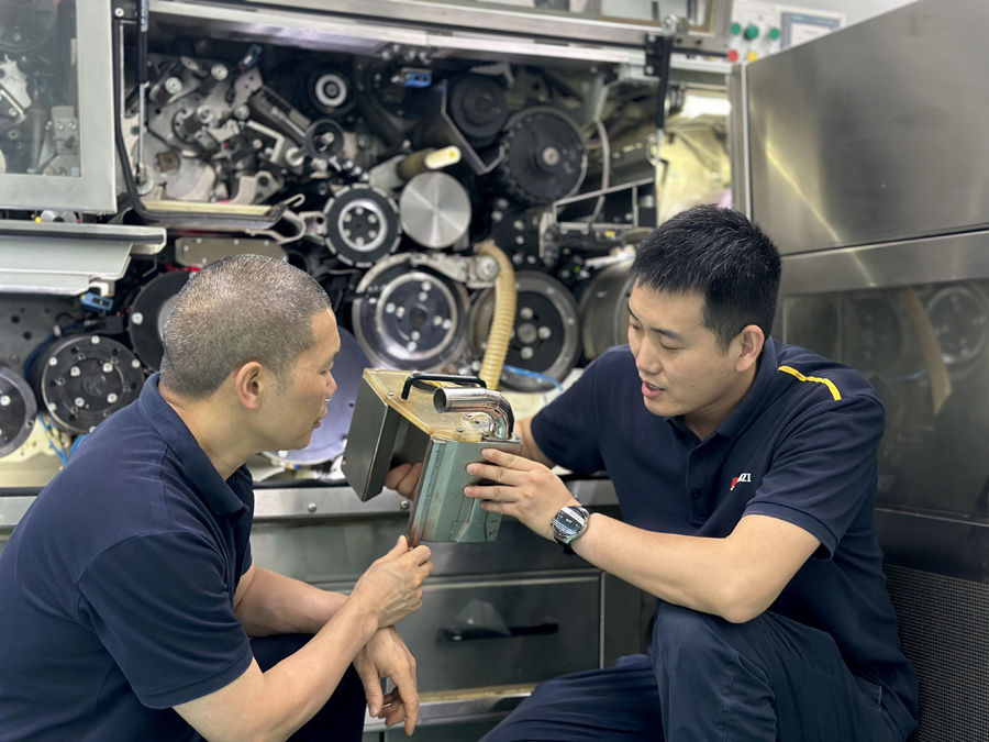 针对上胶辊锁紧装置失效,团队设计气动胀紧装置、气动压紧装置、双平键固定装置,通过正交试验法反复测试,达到了锁紧效果;在接装纸未及时释放的问题上,团队采用“双因素优选法—旋升法”进行数十次调试,最终确定参数并进行改造,实现接装纸搭接成功率100%;在升级烟末清理装置的过程中,小组发挥巧思设计出“吹吸联动”的装置,提升了烟末清理率,推动接装纸夹末缺陷从平均25.2支降至4.2支。