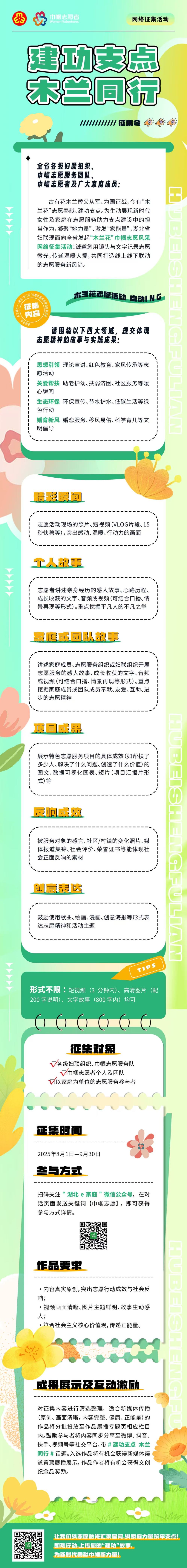 建功支点 木兰同行 湖北省妇联邀您参加“木兰花”巾帼志愿风采网络征集活动