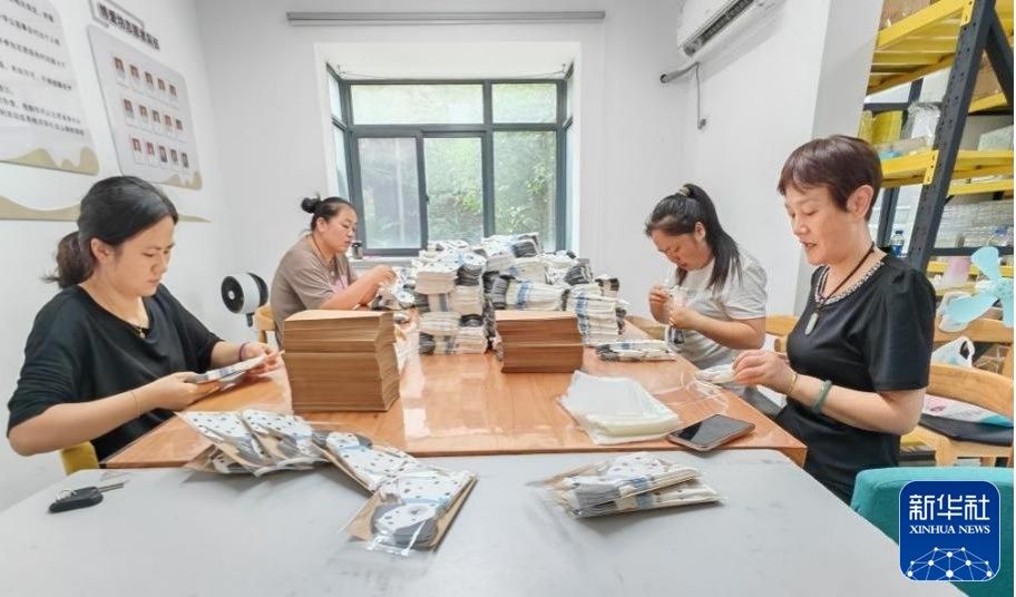 新华社客户端合肥8月20日电(詹燕南)折纸、套袋、封装……走进安徽省马鞍山市和县历阳镇禹锡社区的“禹邻工坊”,几位“宝妈”正低头忙碌,一张张彩印纸巾在她们指尖翻飞,转眼变成俏皮的创意纸巾,即将销往各地市场。