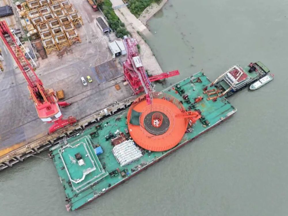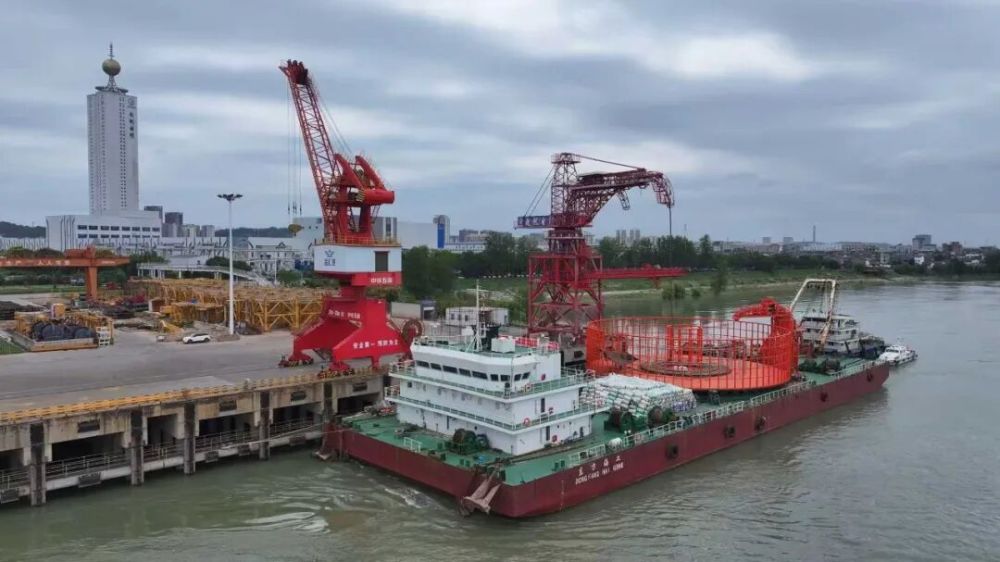 近日,猇亭海汇港,一座高大的红色钢架——运输海缆专用的导缆机矗立长江边。粗长的超高压海底电缆(简称海缆)宛如游动的长龙从生产车间经专业通道爬上钢架顶端,然后缓缓降落,有序盘绕叠加在巨型圆形储缆笼内。这是宜昌起帆交付单笔价值亿元海缆产品现场。
