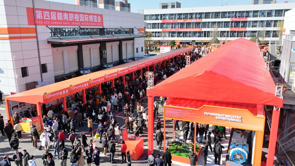 上午9时,以“‘脐’聚赣南,‘橙’就未来”为主题的第四届赣南脐橙国际博览会在此正式拉开帷幕。这场集产品展示、贸易对接、技术交流、品牌推广于一体的脐橙产业大会,吸引了约600名中外嘉宾、客商及行业专家齐聚一堂,共赴“橙色之约”,共话产业发展。