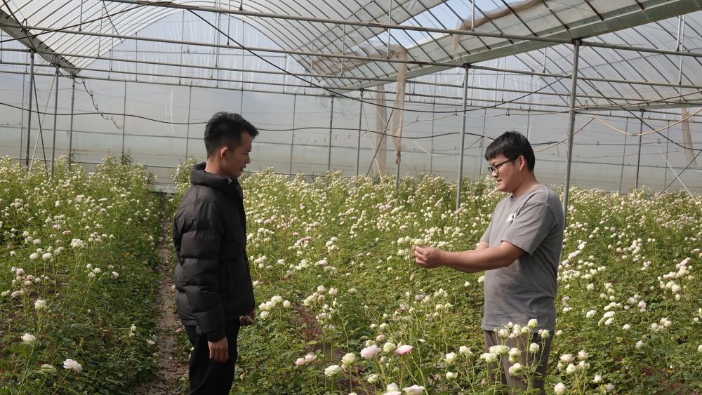村民赵坤的花田里,传统农忙景象被传感器和智能设备所取代,靠一部手机,他就能完成大部分田间管理工作。赵坤介绍,基地安装的“环控精灵”可自动调控天窗、控制机器自动施肥,这套设备让每亩花田的年均水肥成本节省1000元左右,A级、B级花比率提升30%。