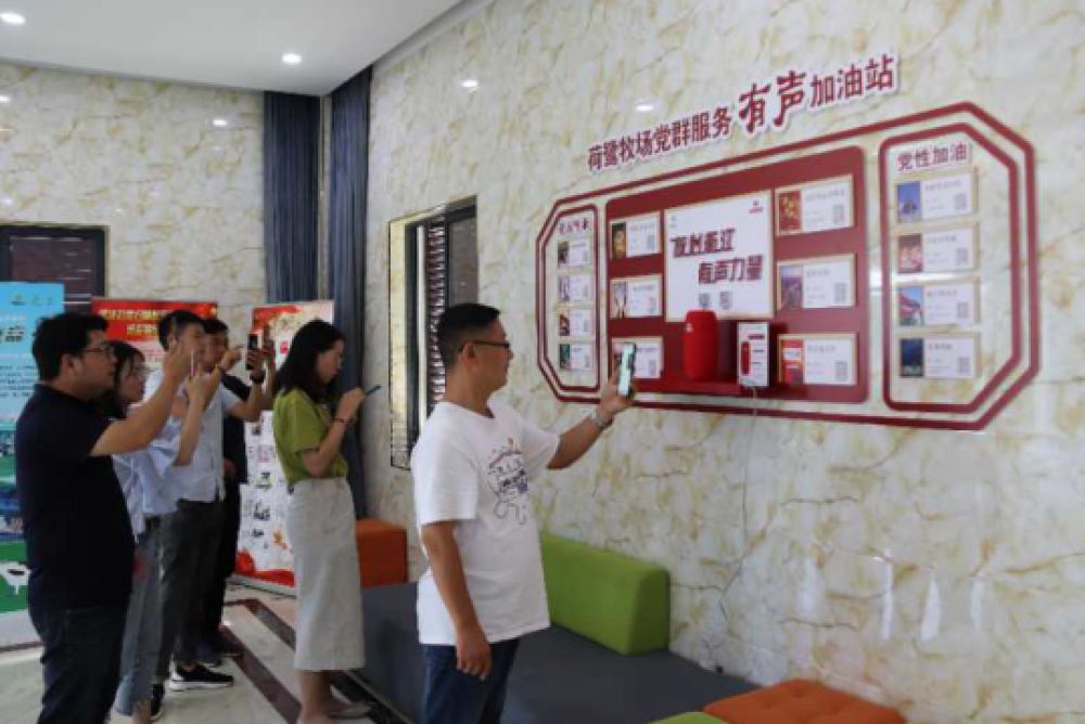 “党群服务有声加油站”以播放党建知识、本地新闻为核心功能,集成“学懂弄通新思想”“十九大精神解读”“改革开放”等20余个党建主题音频二维码。党员群众通过手机扫码即可收听,现场配备AI智能音箱,可与人互动,通过智能点播讲解党建知识,提升了党员教育的便捷性和实效性。
