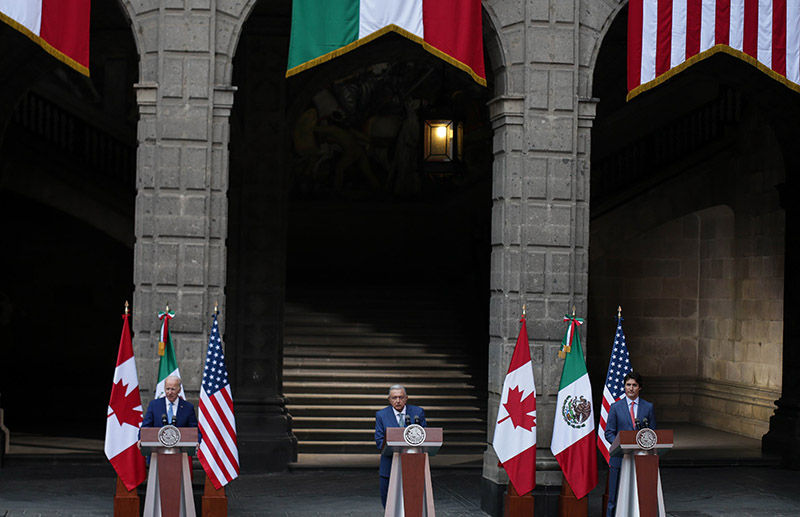 今年 1 月北美三国领导人会谈,墨西哥总统(中)呼吁抛弃霸权主义干涉行为