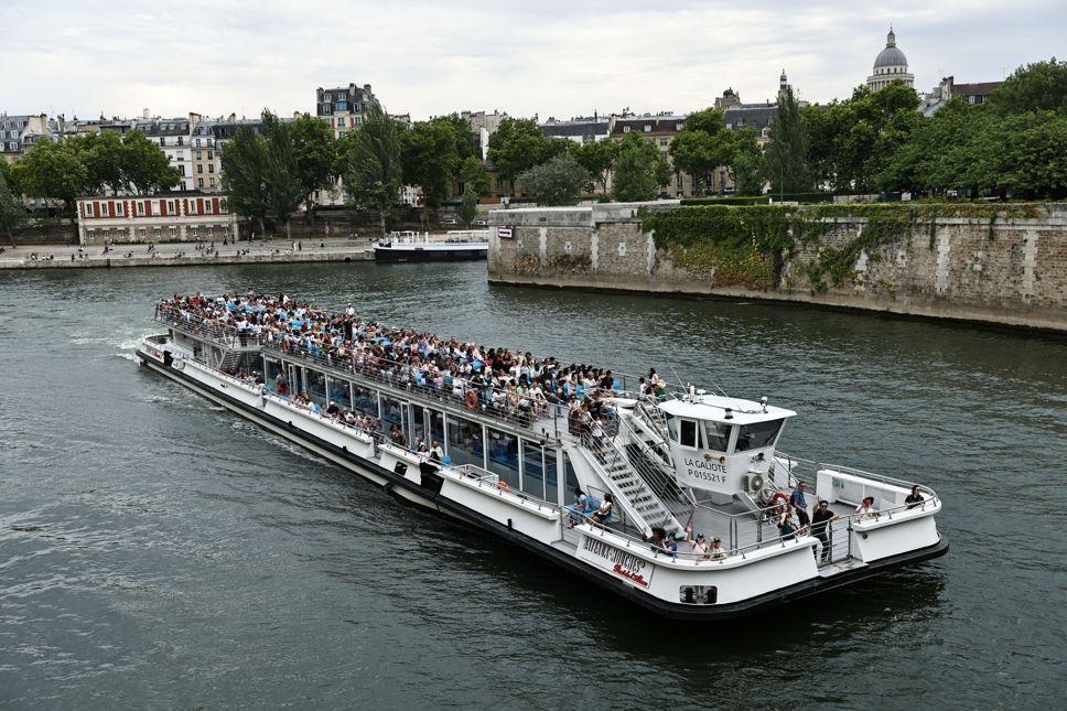 人们在法国巴黎塞纳河上乘坐游船 高静 摄
