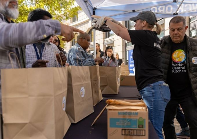 11 月5日,在美国首都华盛顿,联邦雇员排队领取免费食物