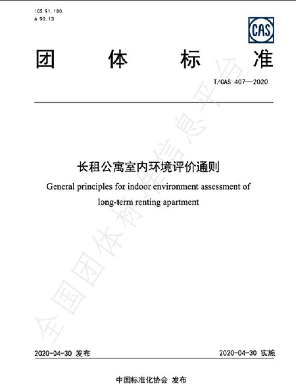 近日,中国标准化协会正式发布长租公寓行业《长租公寓室内环境评价通则》团体标准(标准编号:T/CAS 407-2020,下称《评价通则》)。该通则严格限定长租公寓室内环境评价的对象、指标、流程、等级,并且明确要求参与室内环境评价的长租公寓企业均需满足相关国家或行业标准规定。