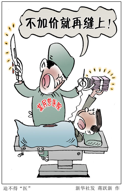步骤三:手术台上敲诈勒索。一旦病人被虚假的检查结果骗上了手术台,就成为医院的俎上之鱼。被害人刘某去欧亚男健医院做包皮切除手术,然而手术中他被告知患有前列腺疾病、阴茎静脉曲张等多种疾病,需要手术治疗。刘某起初不同意,手术室医护人员就在刘某伤口未缝合的情况下,将他晾在手术台上一个小时。麻药药效过后刘某疼痛难忍,最终被迫接受5.8万元的手术治疗。