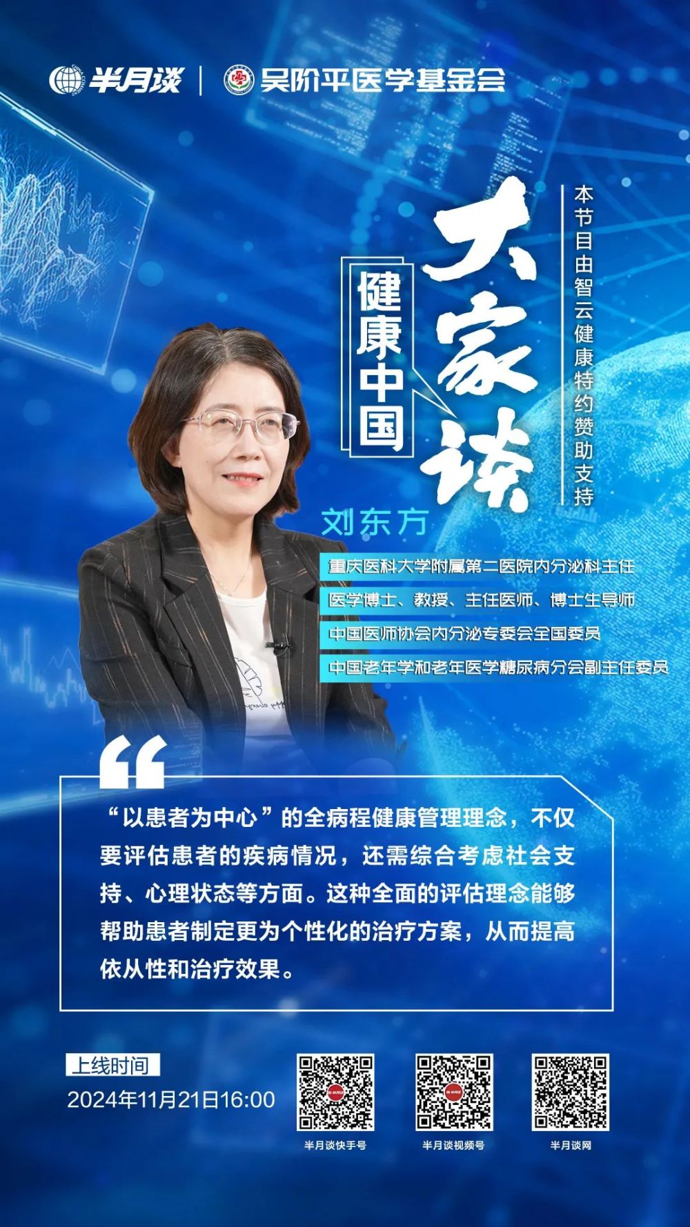 “‘以患者为中心’的全病程管理服务模式,是一种全面的医疗服务模式,不仅要评估患者的疾病本身,还需综合考虑患者的社会支持、心理状态等情况。这种全面的评估模式能帮助制定更为连续、综合、个性化的治疗方案,从而提高患者的依从性和治疗效果。”重庆医科大学附属第二医院内分泌科主任刘东方介绍道。