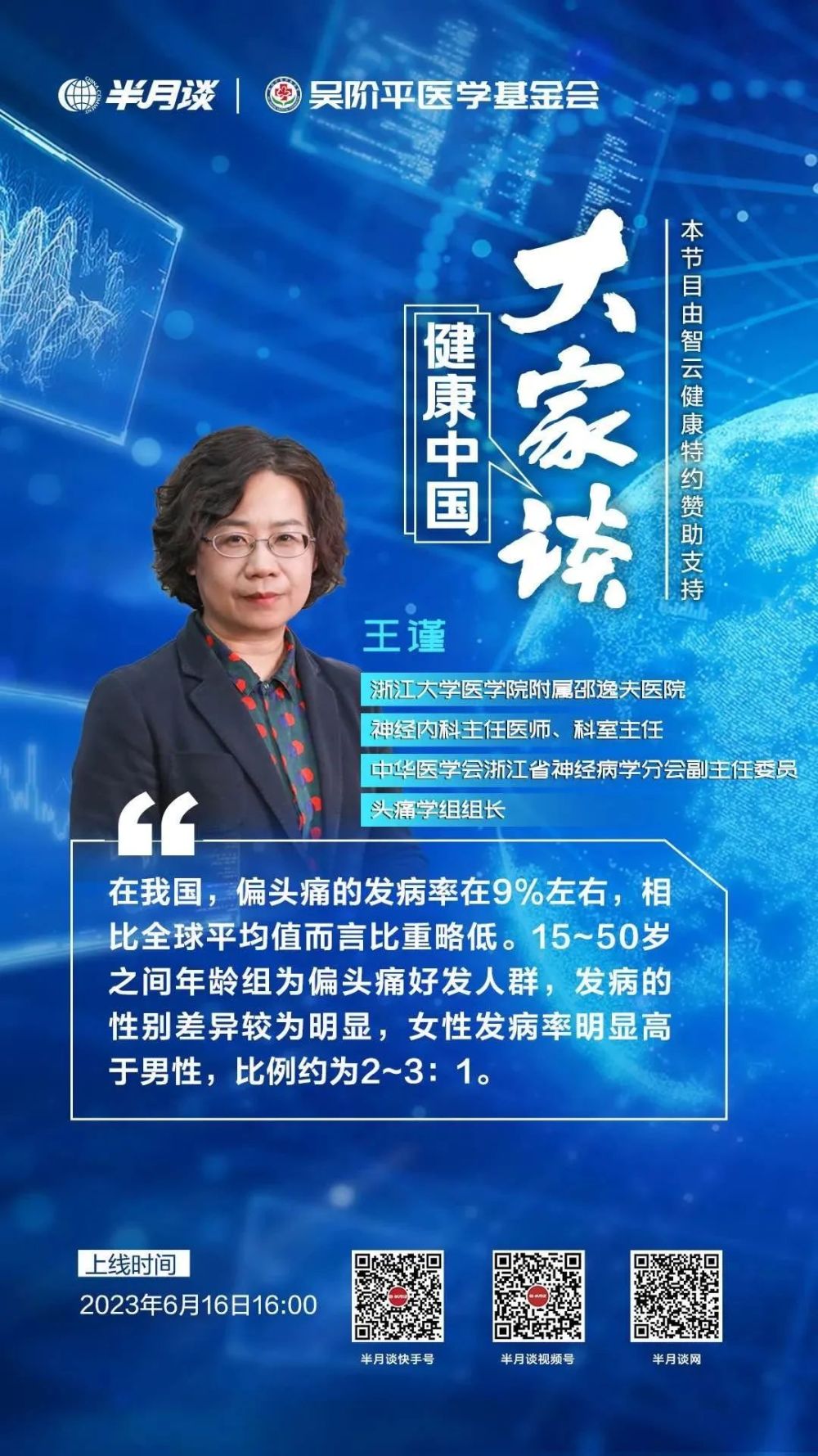偏头痛领域专家,浙江大学医学院附属邵逸夫医院神经内科主任医师、科室主任,中华医学会浙江省神经病学分会副主任委员、头痛学组组长王谨介绍着偏头痛的易发人群。