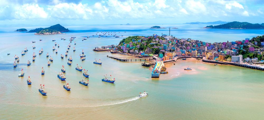 台州鸡山岛海港渔船出海捕鱼