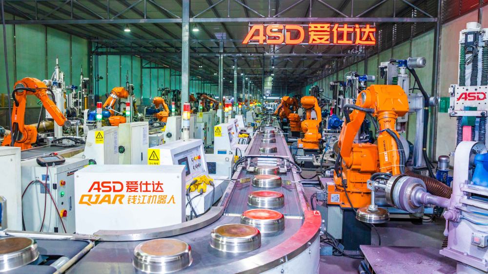 台州制造业发达,是全球知名的炊具和家电制造基地,图为台州民营企业的锅具生产线