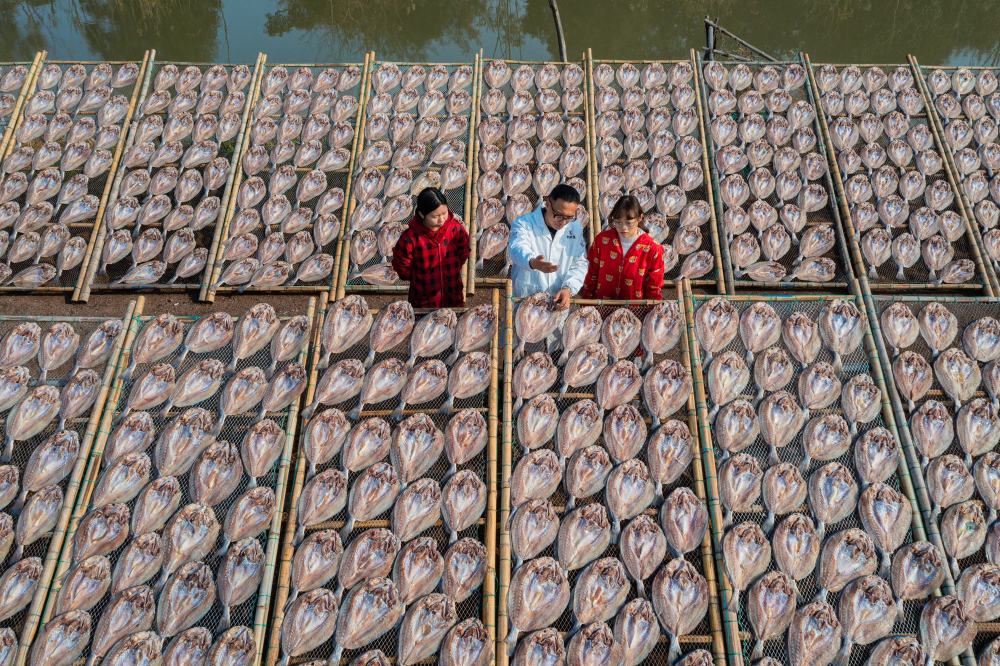 台州温岭松门镇海边空地上晒满鱼鲞