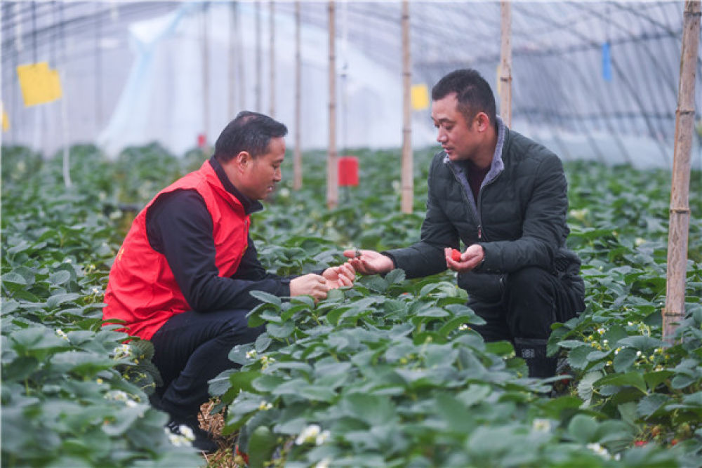 农技人员(左)在对种植户进行技术指导 徐昱 摄