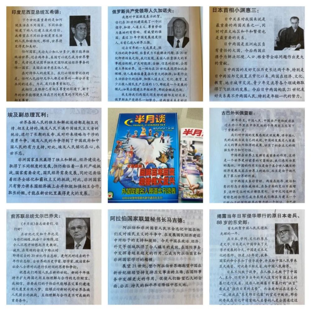 2000年半月谈首次出版大开本刊物——第1、2期合刊,八位外国政要名人向本刊发表贺辞,向广大中国读者祝福新年新世纪