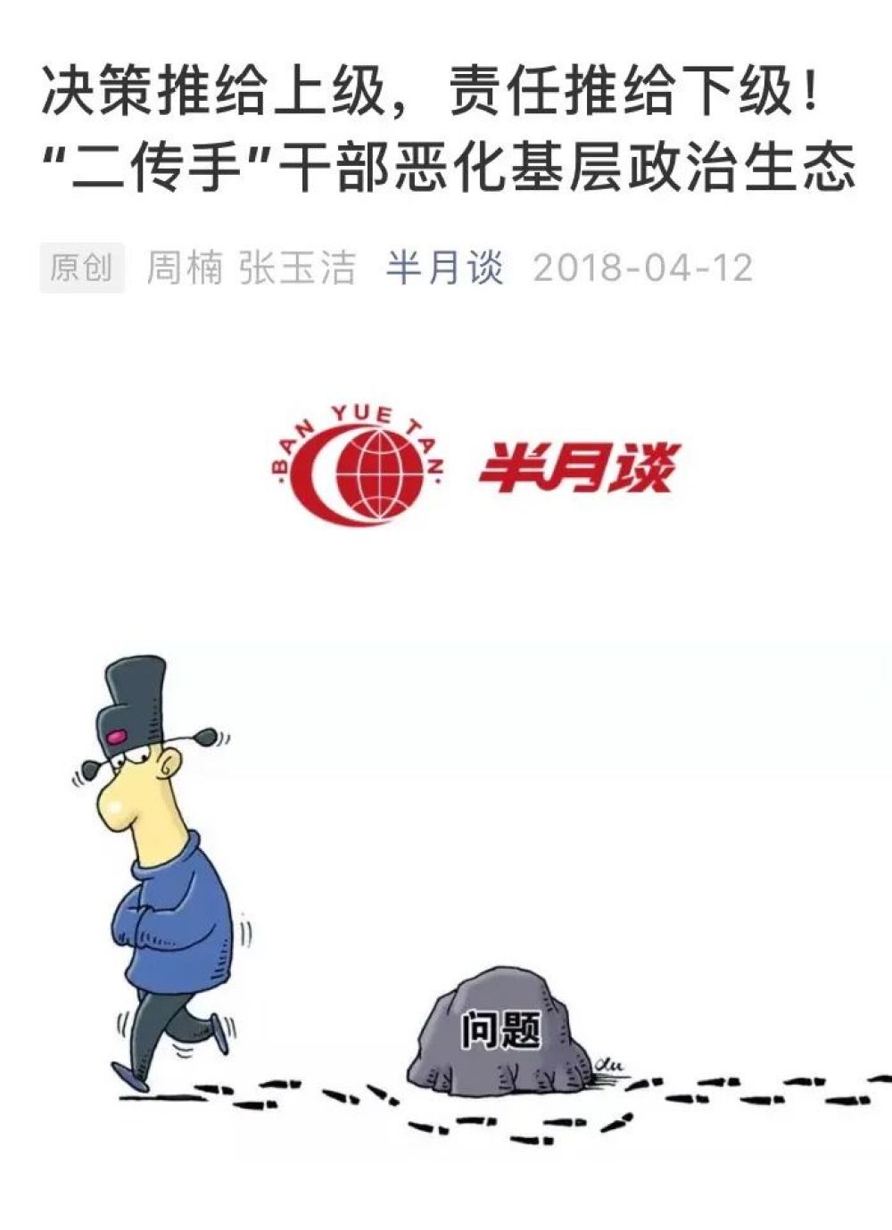 一个月后,当我就“二传手”现象做调研时,沟通就顺畅了很多,除少部分基层干部仍有顾虑,大部分受访基层干部就愿意敞开谈。一位镇长甚至还打开私人微信群,与我分享他们的聊天记录,后来在半月谈发表的《决策推给上级,责任推给下级!“二传手”干部恶化基层政治生态》里,广为传播的那句话——“‘二传手’干部有四大绝招:布置一下、传达一下、上报一下、推脱一下”就来自于他们的聊天记录。这篇报道发出来后,许多过去在微信朋友圈长期“潜水”的基层干部,都变得活跃起来,不仅评论和转发,还找我单独探讨这个话题。