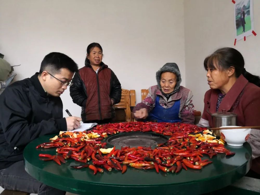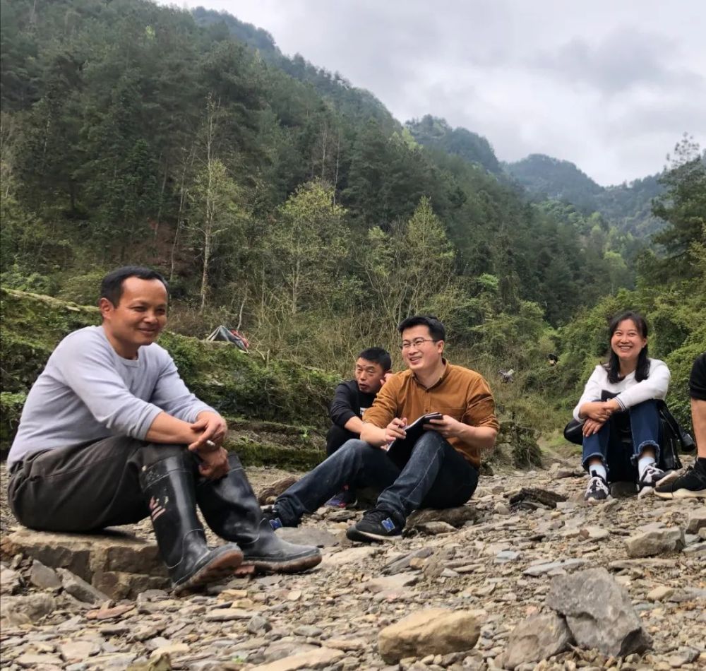 周楠(左一,新华社湖南分社农村采访部主任)在贵州铜仁石阡县采访贫困户