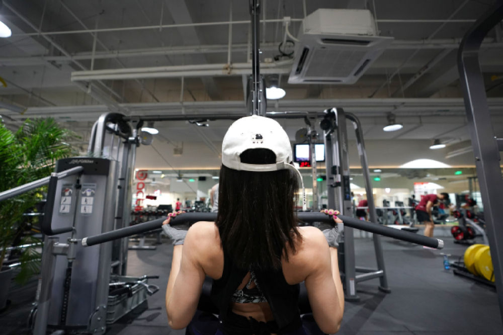 一位女孩在健身房内健身锻炼