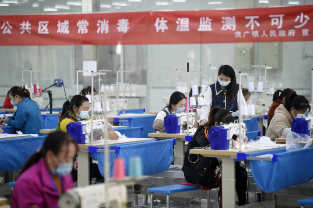 抗疫期间保就业。图为村民在扶贫车间工作 王鹏