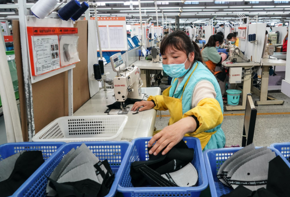 淮安源通制帽有限公司扶贫车间内,工人在生产帽子 杨磊 摄