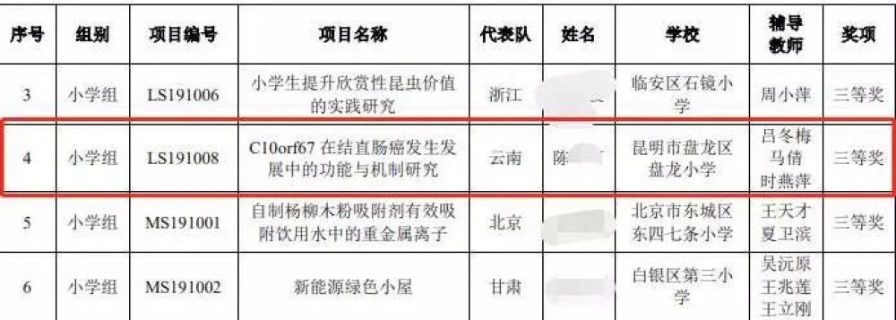 对此,13日,中国科学院昆明动物研究所官网发布声明称,经初步核查,全国青少年科技创新大赛“C10orf67在结直肠癌发生发展中的功能与机制研究” 获奖项目学生系该所一位研究员的孩子。该研究所已成立调查组,对此事进行深入调查。后续将及时向社会反馈相关调查结果。