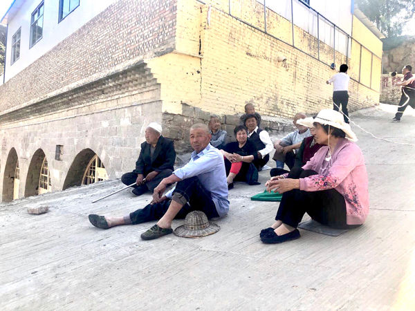 陕西榆林佳县干完活的花甲老人在村口席地而坐休息 张斌 摄