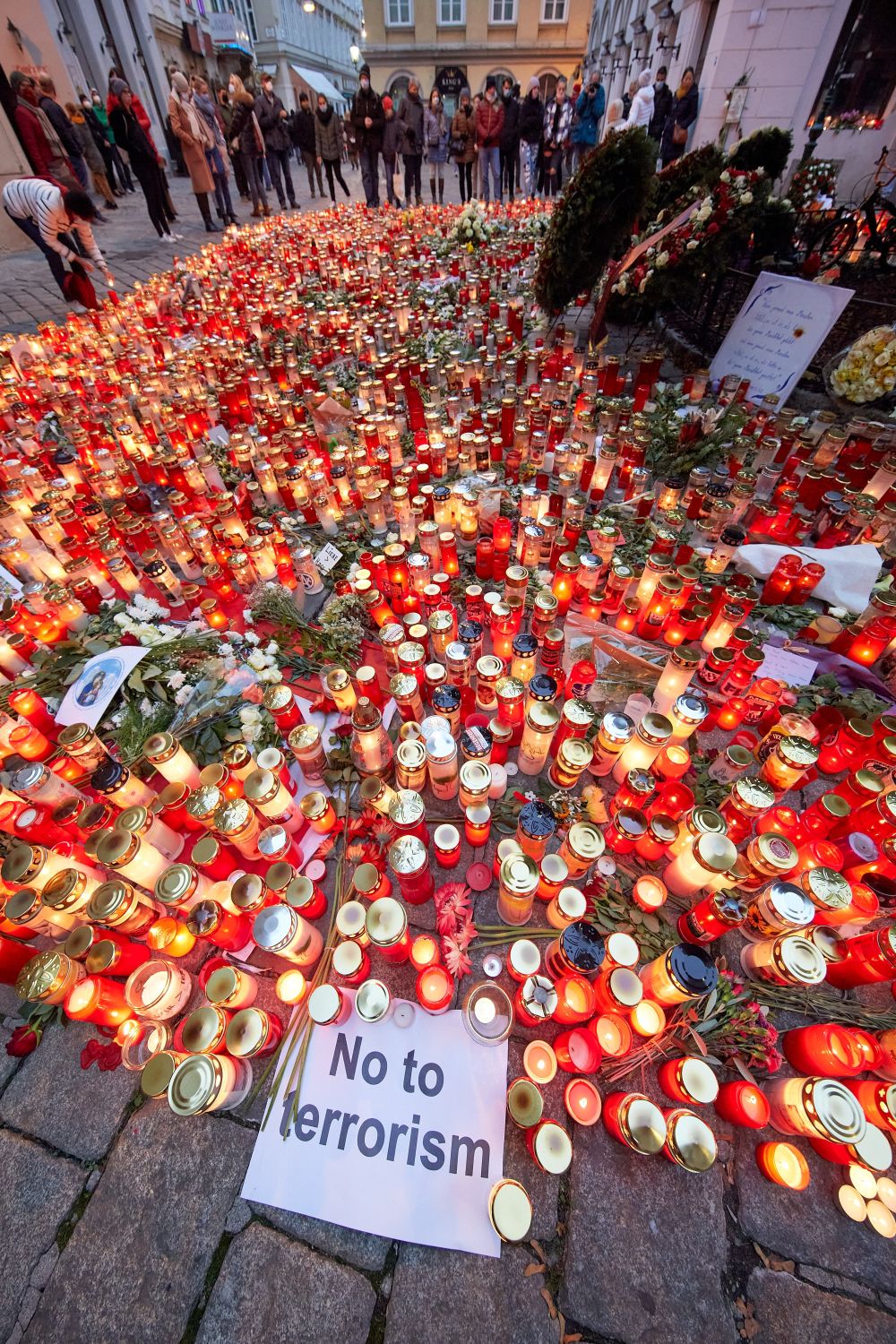 11月8日,在奥地利维也纳,人们点燃蜡烛哀悼维也纳枪击事件遇难者