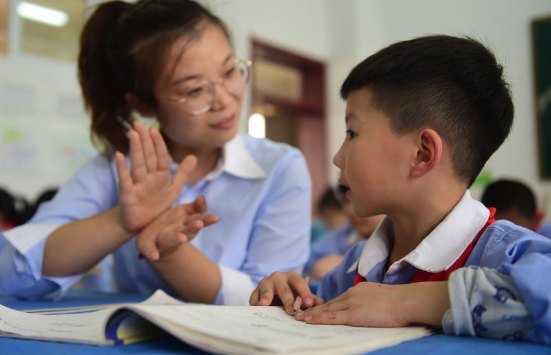 河北沧州小学“延时放学”,学生在老师指导下完成作业 王民 摄