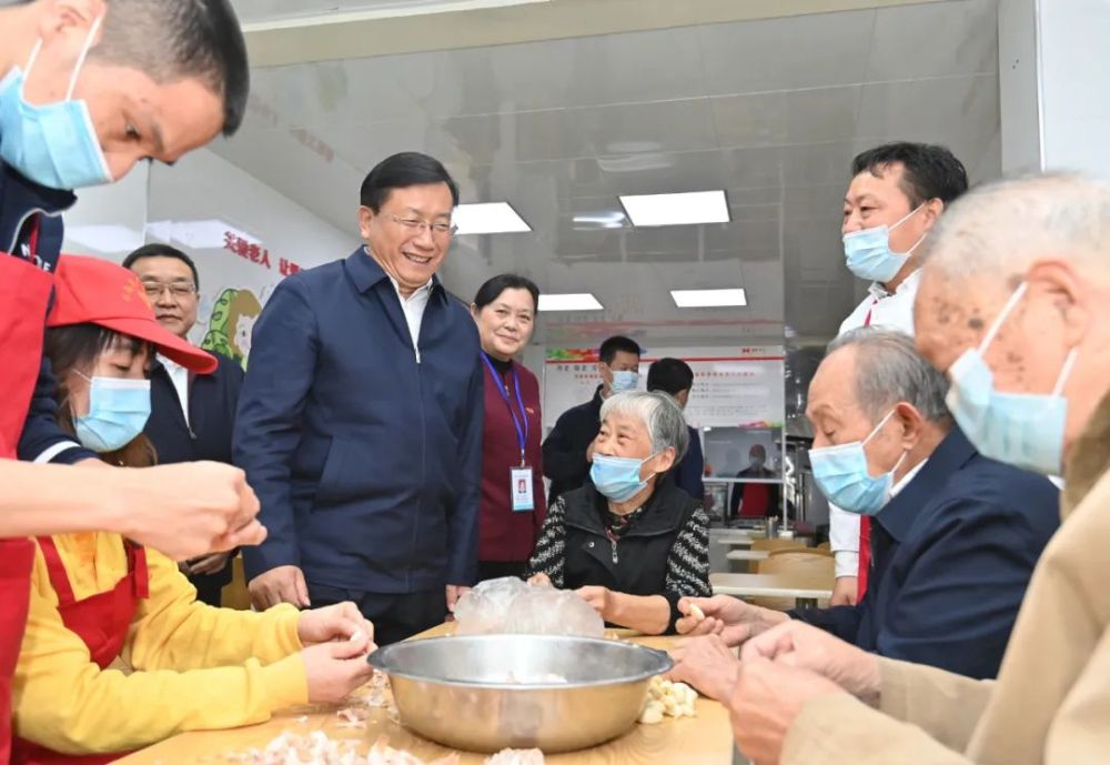 湖北省委常委、武汉市委书记王忠林在武汉发展社区“幸福长廊”,实地调研幸福食堂、互联网+养老等服务情况