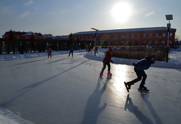 学生们在图里河中小学滑冰场上滑冰 魏婧宇 摄