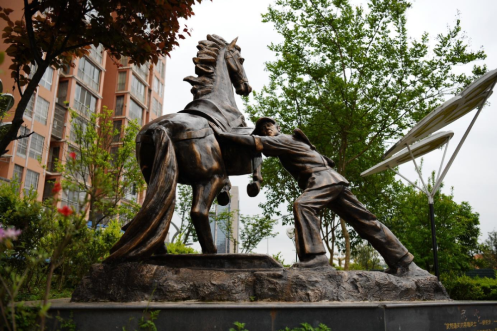余庆县天湖广场上的邹前方推马雕像(2021年4月9日摄)。新华社记者 郑明鸿 摄