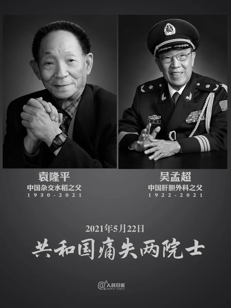 5月22日下午,两位国家最高科学技术奖得主相隔数分钟离世。13:02分,中国肝胆外科之父吴孟超院士逝世;13:07分,杂交水稻之父袁隆平院士逝世。双星陨落,人们纷纷用自己的方式寄托哀思,沉痛悼念。