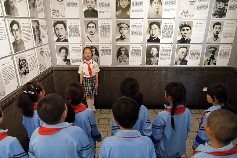 在井冈山革命烈士陵园,学生在进行义务讲解 彭昭之 摄