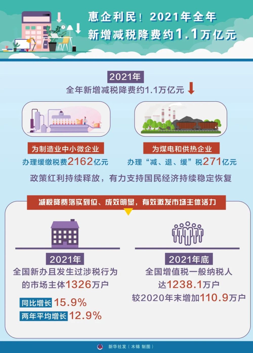 稳经济关键要稳市场主体,稳市场主体重点在减负纾困,减税降费。疫情发生以来,减税降费是助企纾困直接有效的办法,也是“放水养鱼”、涵养税源的重要举措。去年我国新增减税降费超过1万亿元,今年将加大相关政策实施力度,预计全年退税减税约2.5万亿元。