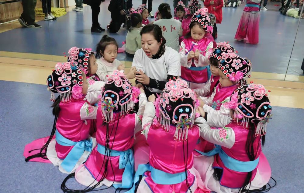 2018年,正愁找不到人学川剧的谭冬鸣,在区文化馆的牵线下,把川剧班开进了学校。她一口气招了4个班,每个班学生60多人。后来,她又在政府帮助下,把川剧班开到6所小学和一个幼儿园。