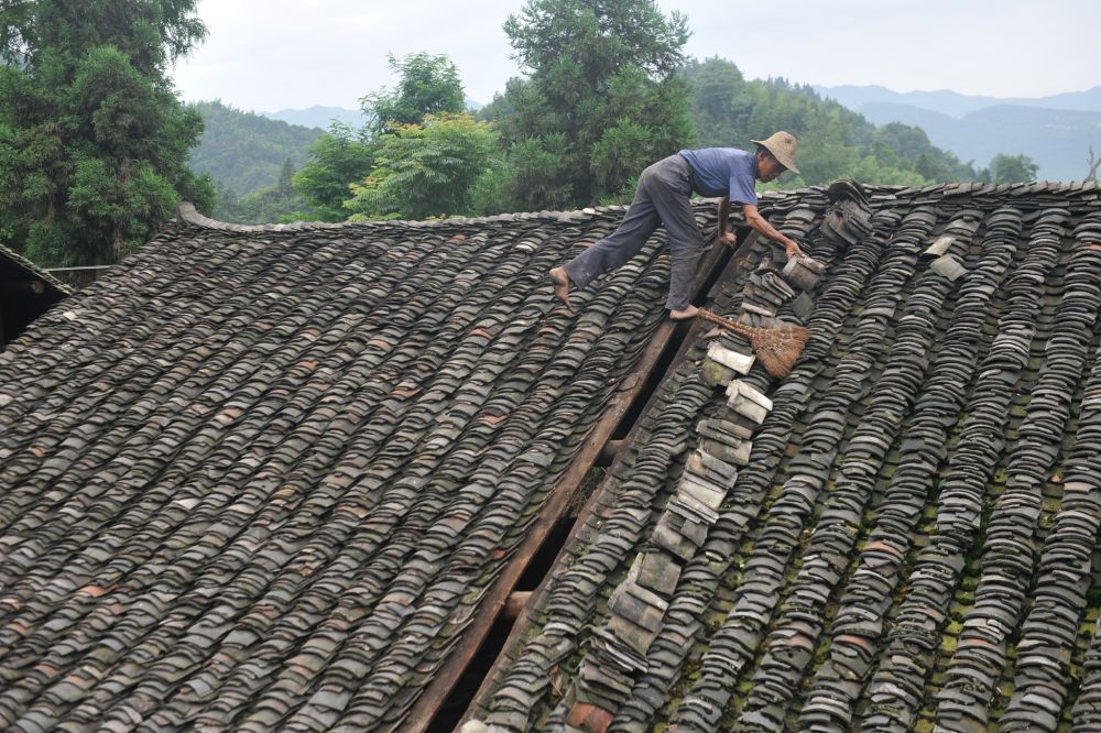 湖北恩施 :农村辛勤的“瓦上蜘蛛侠”(图片来源 :视觉中国)