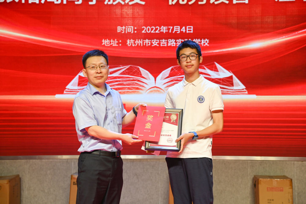 鉴于此,半月谈杂志社决定授予张裕周同学“半月谈优秀读者”称号;向杭州市安吉路实验学校赠送各100套2022年《半月谈》《半月谈内部版》《时事资料手册》和《品读》杂志,同时在学校设立“半月谈读书角”,赠送半月谈系列图书。