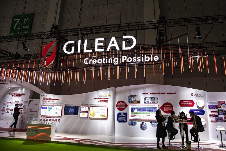2022 年 11 月 7 日,第五届进博会药品展区,美国知名生物科技公司吉利德展台(图片来源 :视觉中国)