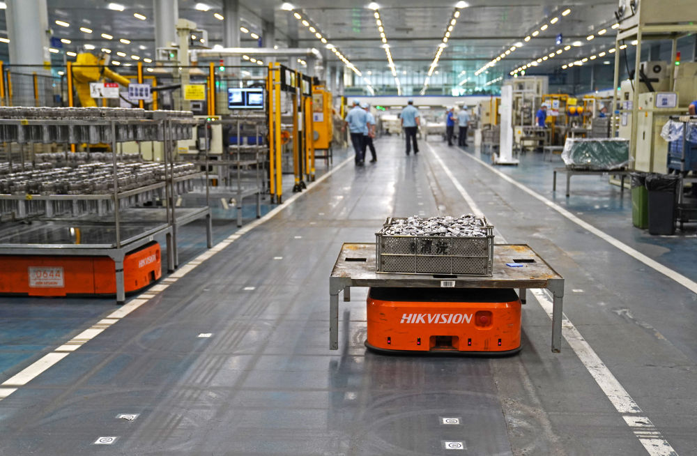 自动化生产线上,产品被打上激光编码 徐昱 摄