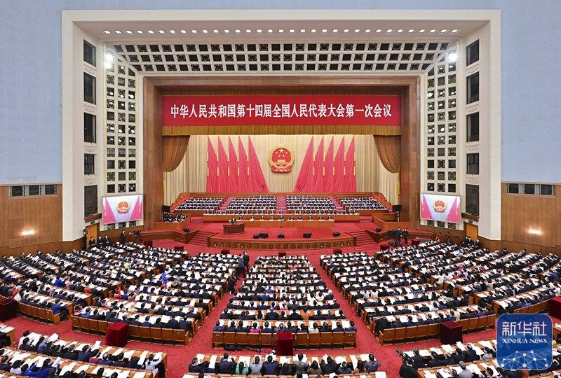 3月7日,十四届全国人大一次会议在北京人民大会堂举行第二次全体会议。新华社记者 燕雁 摄