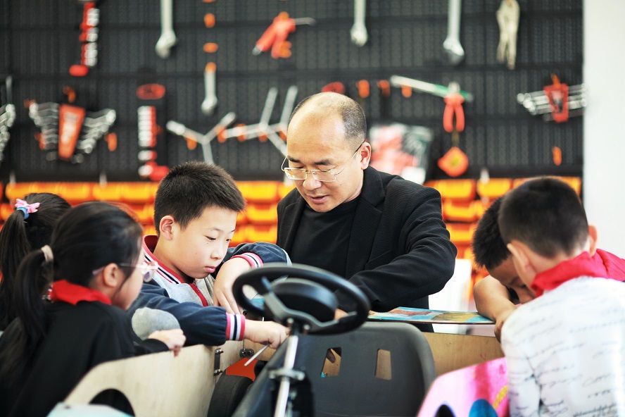 齐家小学学生在学校赛车工坊学习机械、力学知识